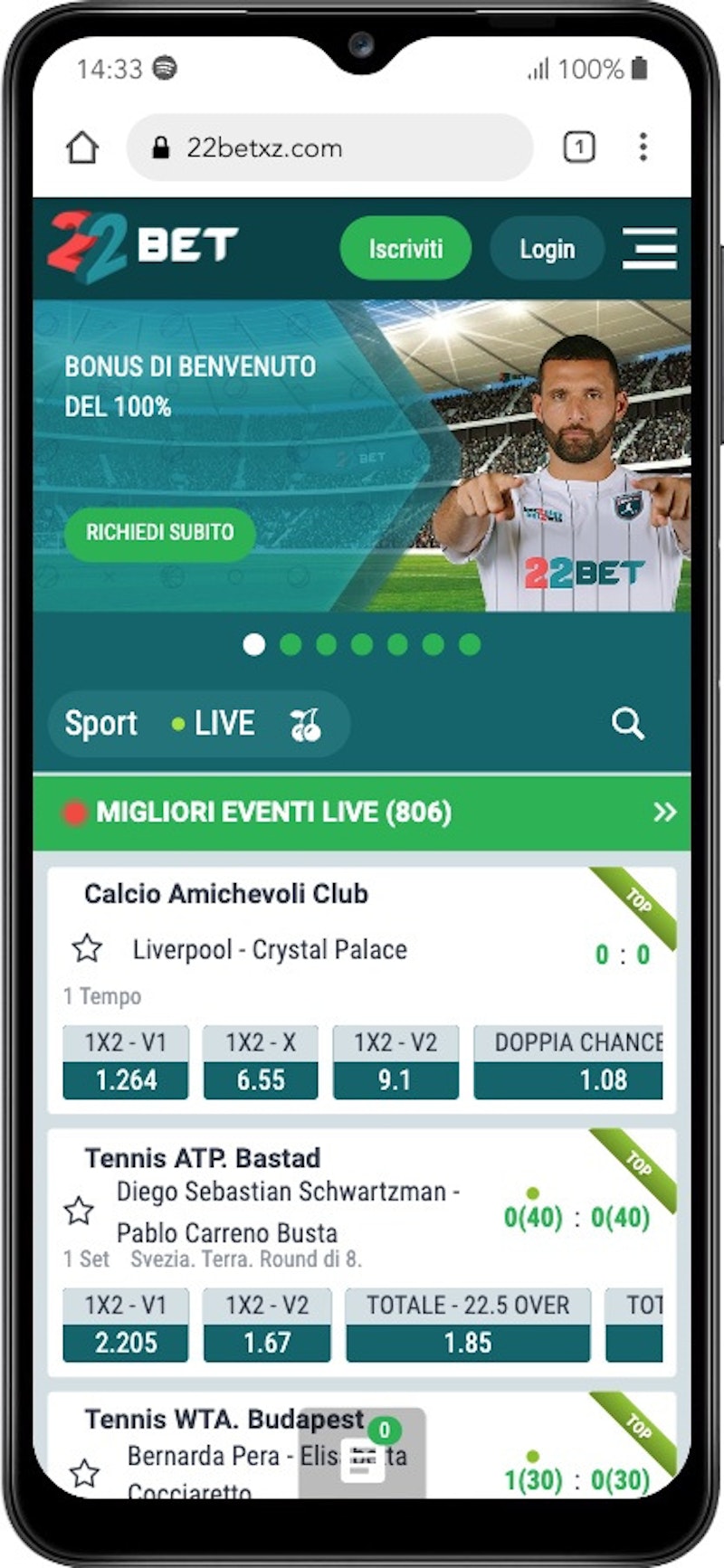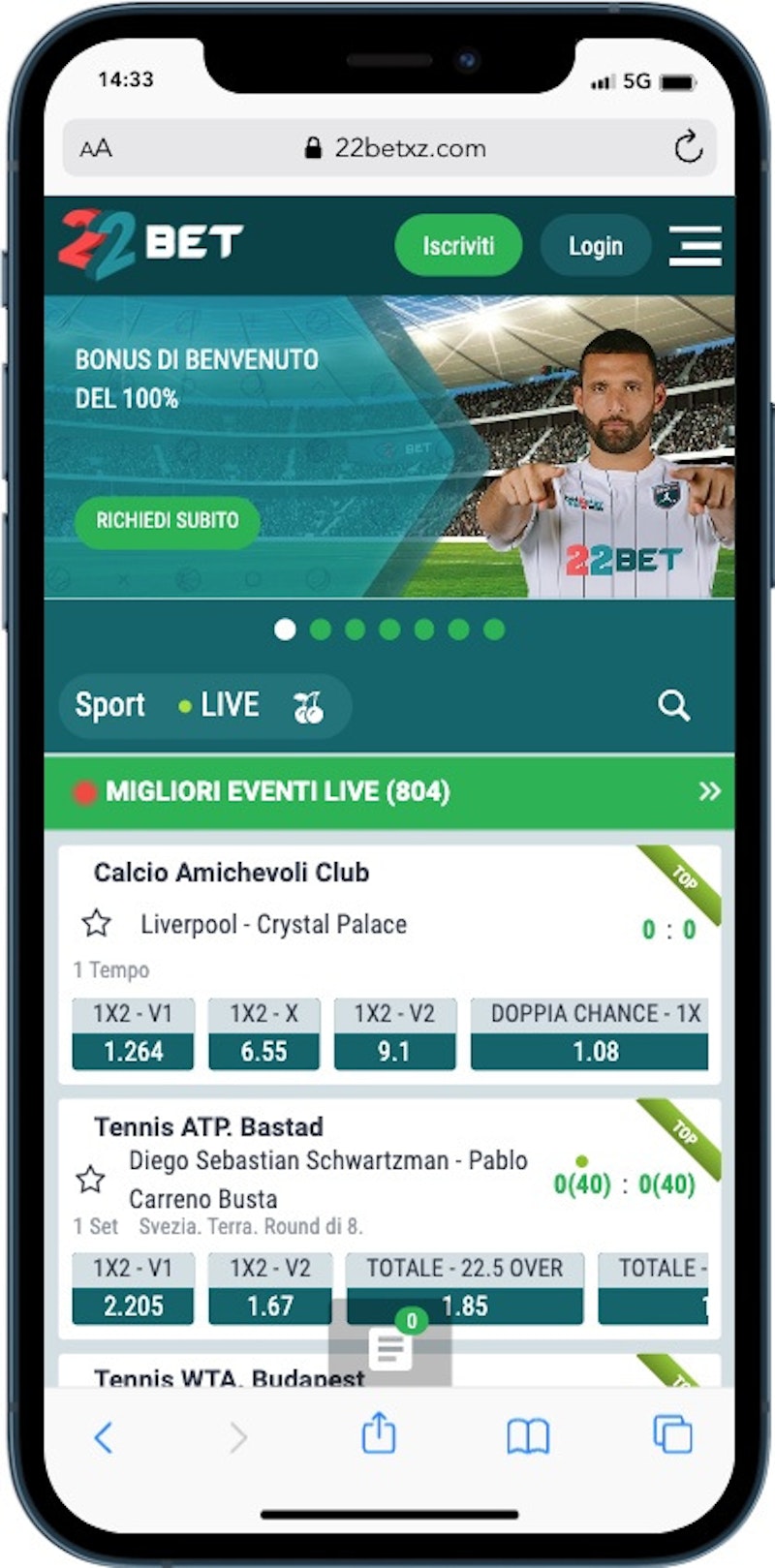 L'app 22Bet è disponibile sia per dispositivi iOS che Android.
