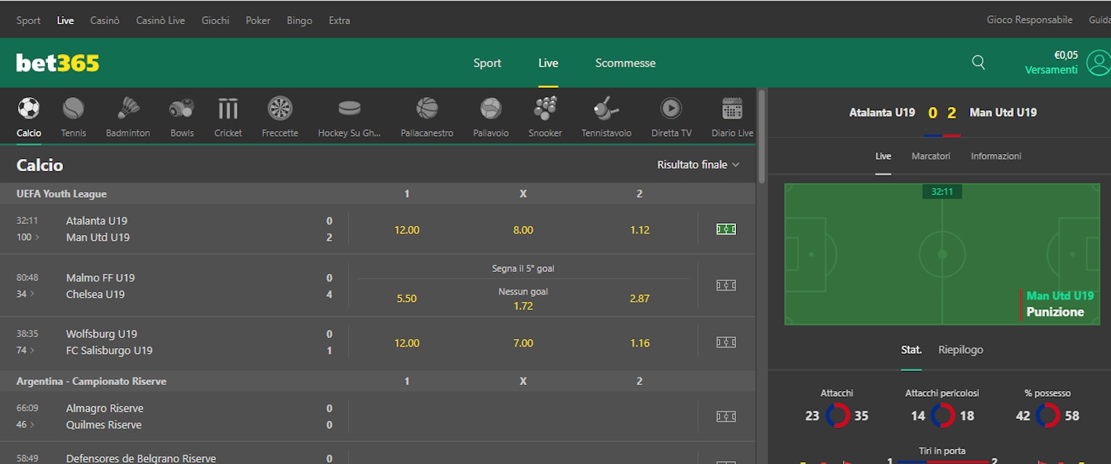 La sezione live Bet365 è probabilmente la migliore in assoluto