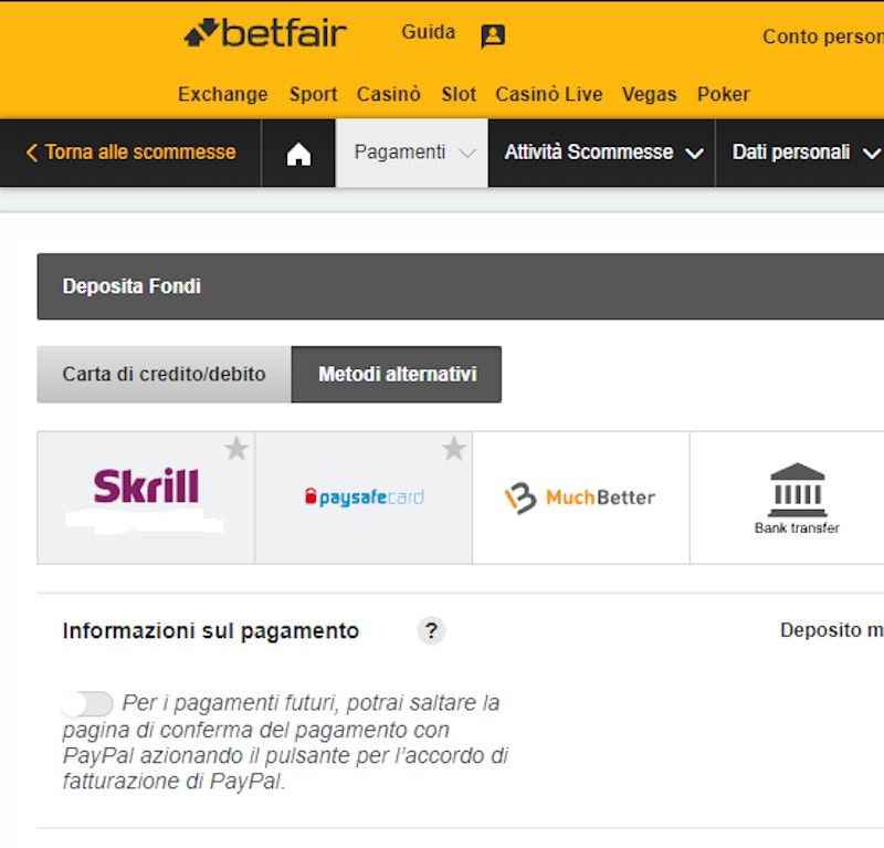 Metodi di pagamento Betfair