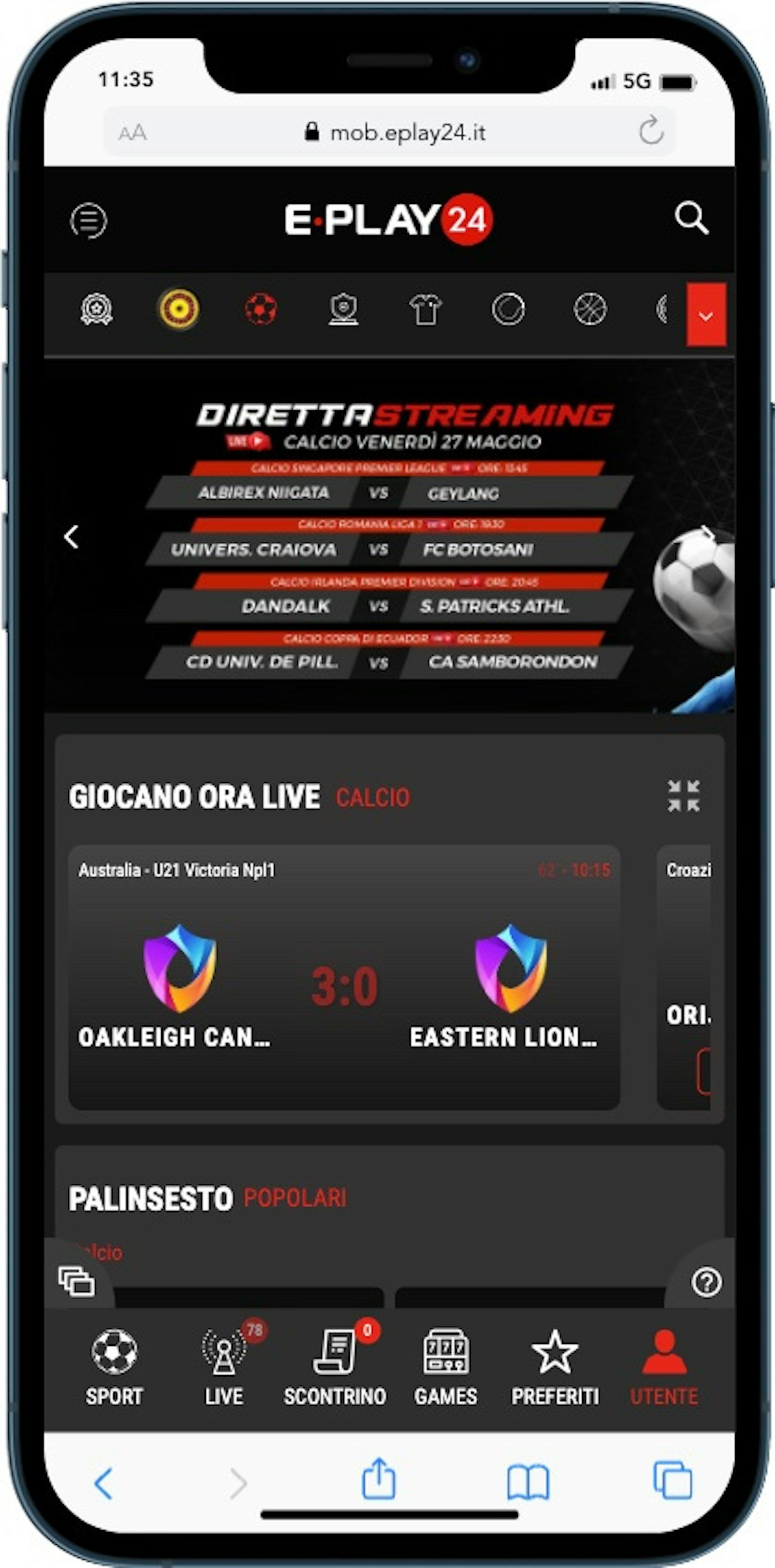 Gli sport totali sono ben 24 al momento; tra di essi vi segnalo che su E-Play24 sono disponibili anche gli eSports, con Dota2 e League of Legends tra i giochi principali.