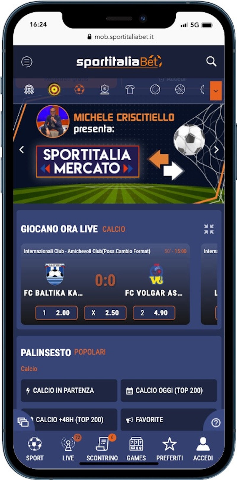 ✅ App: l'app scommesse offerta da SportitaliaBet è nel top assoluto rispetto ad altri siti scommesse. Non solo per la completezza in termini di tipologie di scommesse e sport, ma anche per la sua grande facilità d'uso.